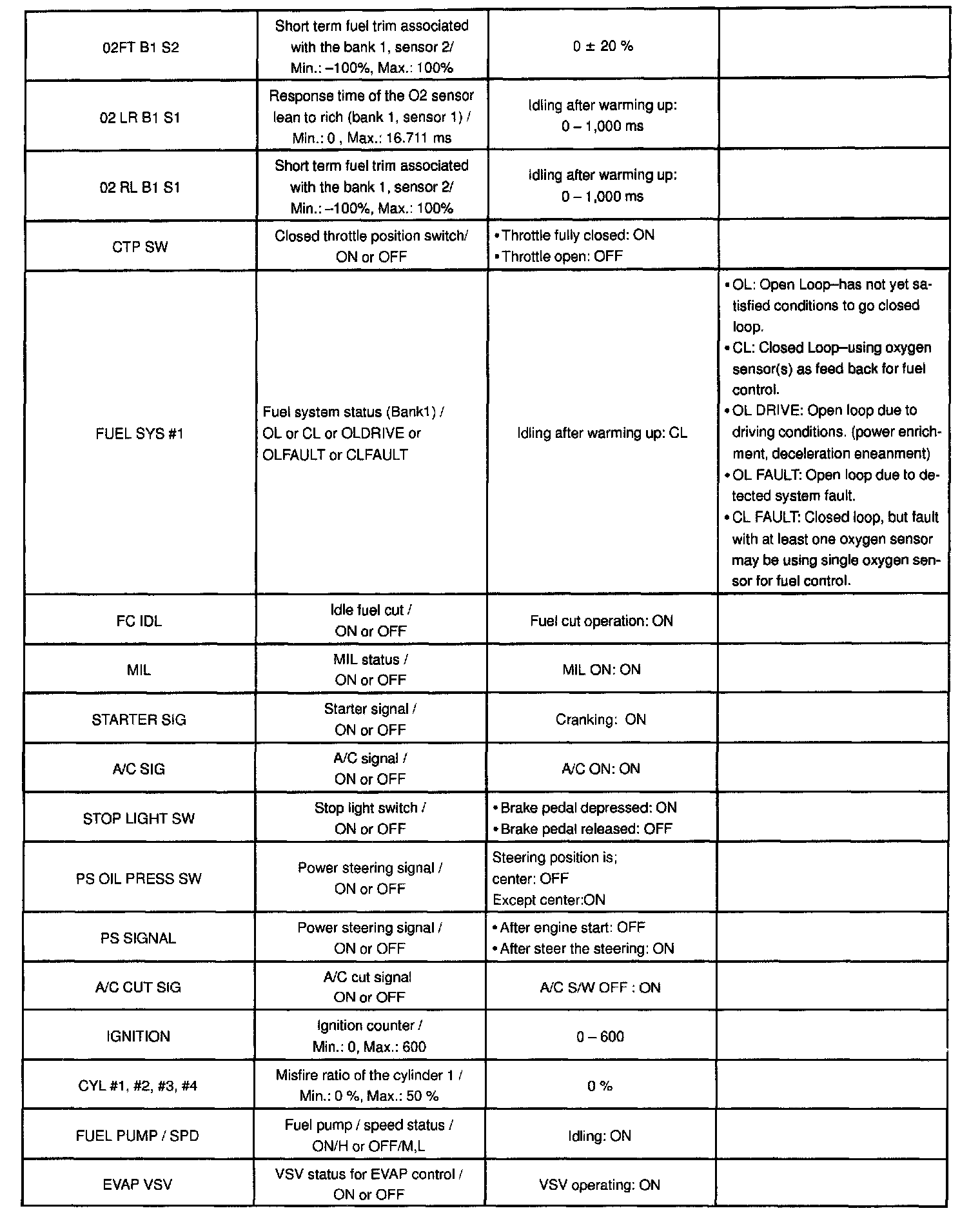 According to the DATA LIST displayed by the OBD II scan tool or hand-held tester, you can read the value of the switch, sensor, actuator and so on without parts removal. Reading the DATA LIST as a first step of troubleshooting is one of the method to shorten the labor time.