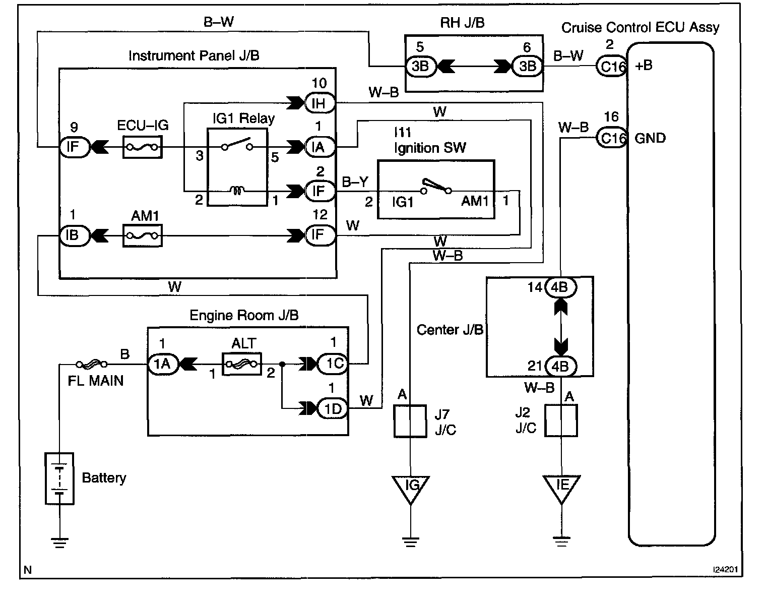 CIRCUIT DESCRIPTIONThe cruise control ECU assy power source supplies power to the actuator and sensors, etc., when terminal GND and the case of the cruise control ECU assy are grounded.