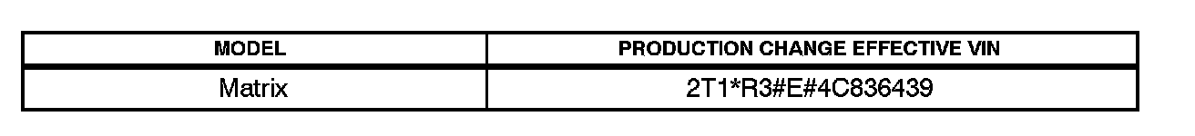 ^ 2003 - 2004 model year Matrix vehicles equipped with the 1ZZ-FE engine produced BEFORE the Production Change Effective VIN shown below.