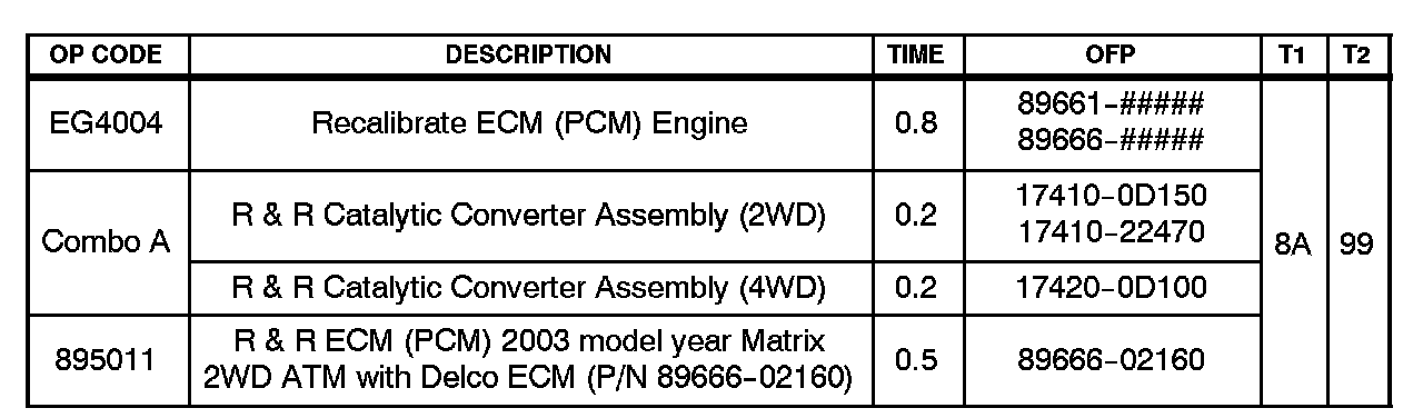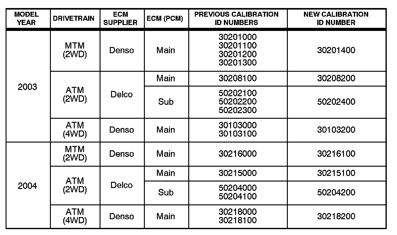 1. 2003 model year Matrix 2WD ATM vehicles equipped with Delco ECM (PCM) P/N 89666-02160 are not reprogrammable.