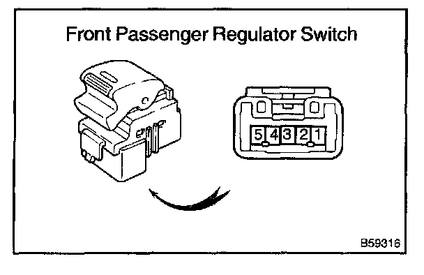 a. Inspect the front passenger's regulator switch continuity.