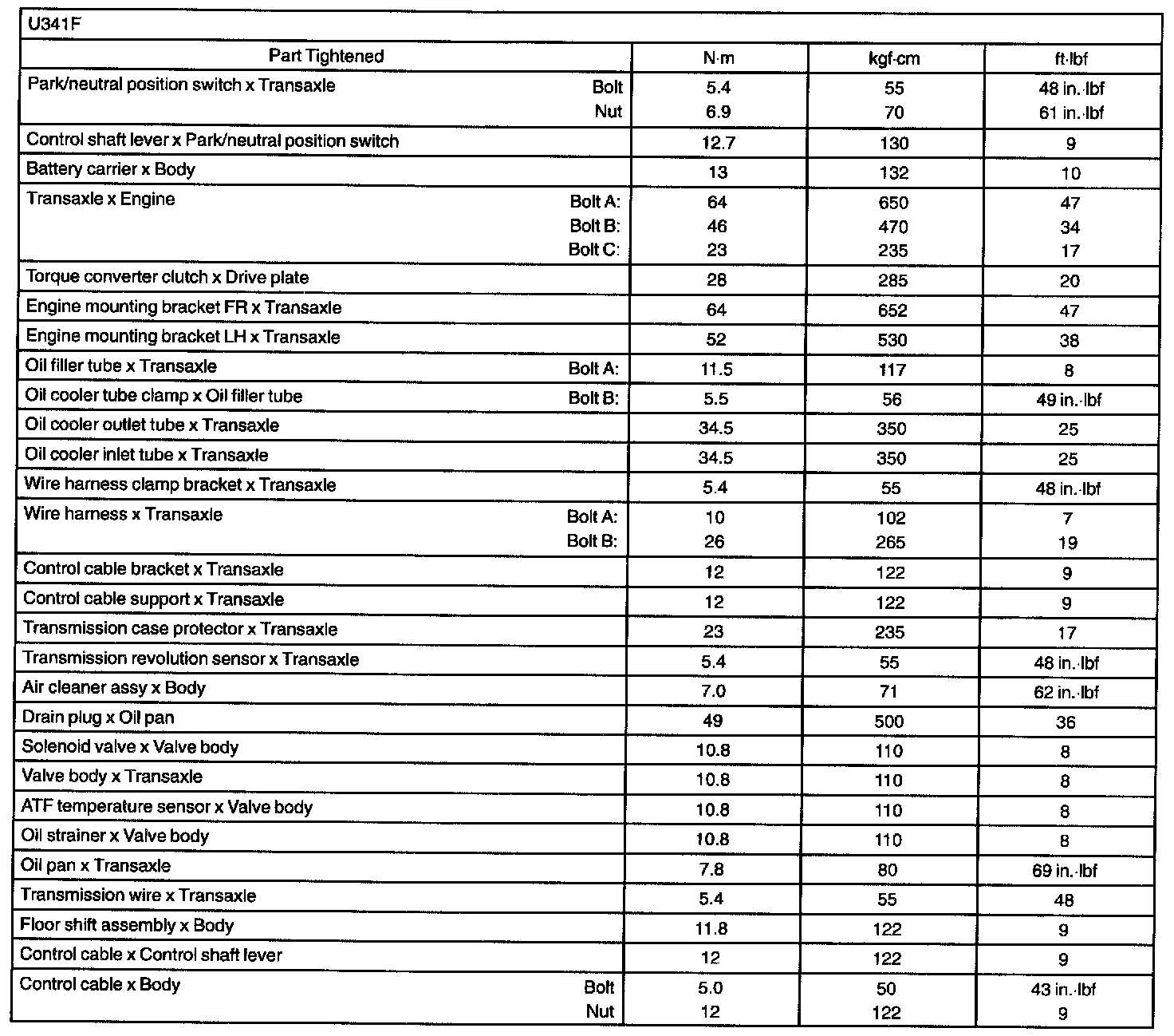 Automatic Transmission/Transaxle - Torque Specification: