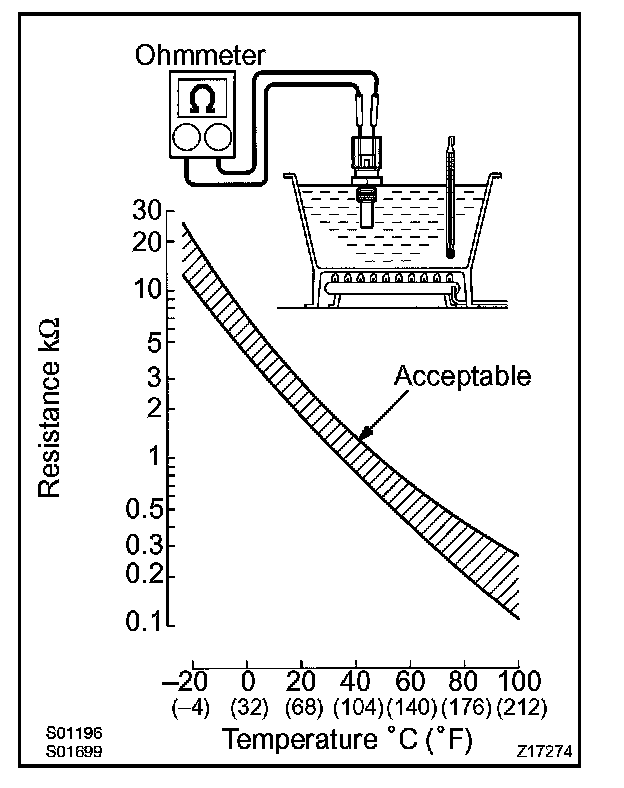 Coolant Temperature Sensor/Switch (For Computer): Testing and Inspection
