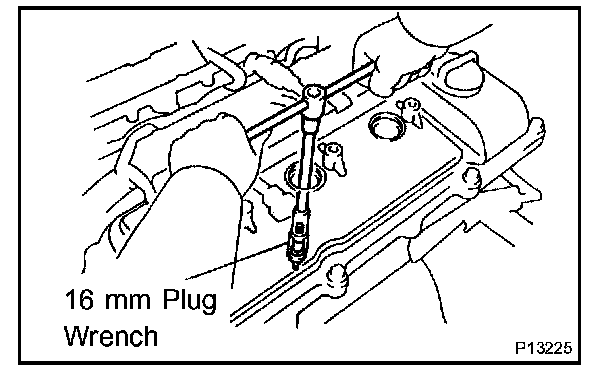 c. Using a 16 mm plug wrench, remove the 6 spark plugs.