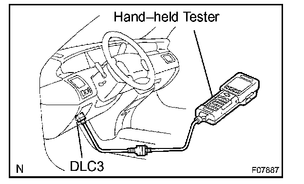 4. Connect the hand-held tester to the DLC3 in the lower part of the instrument panel.