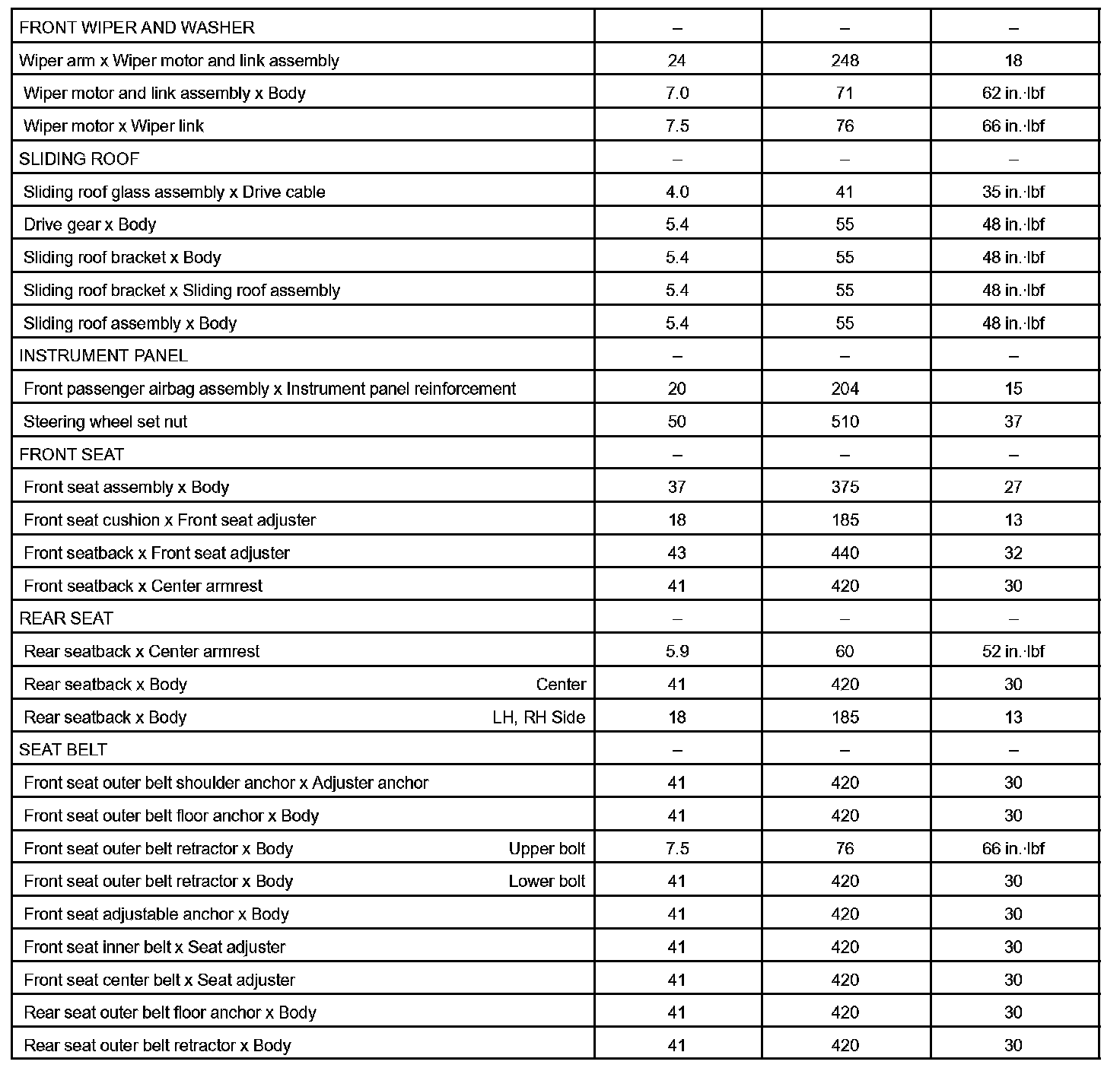 Body - Torque Specification Part 2: