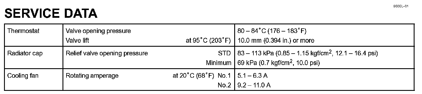 Cooling - Service Data: