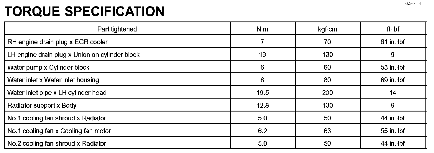 Cooling - Torque Specification: