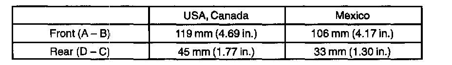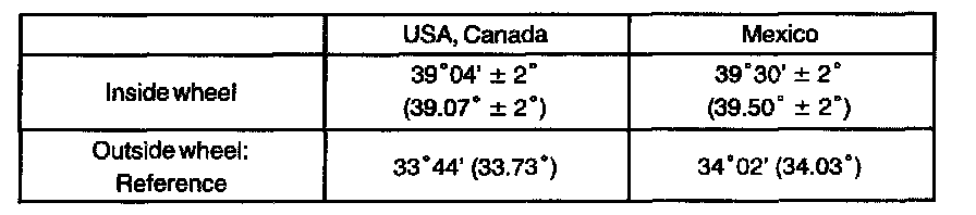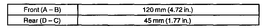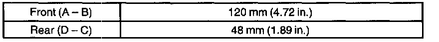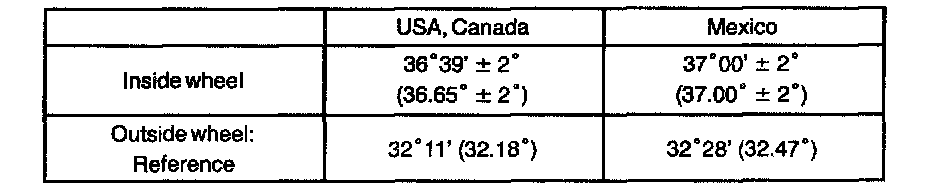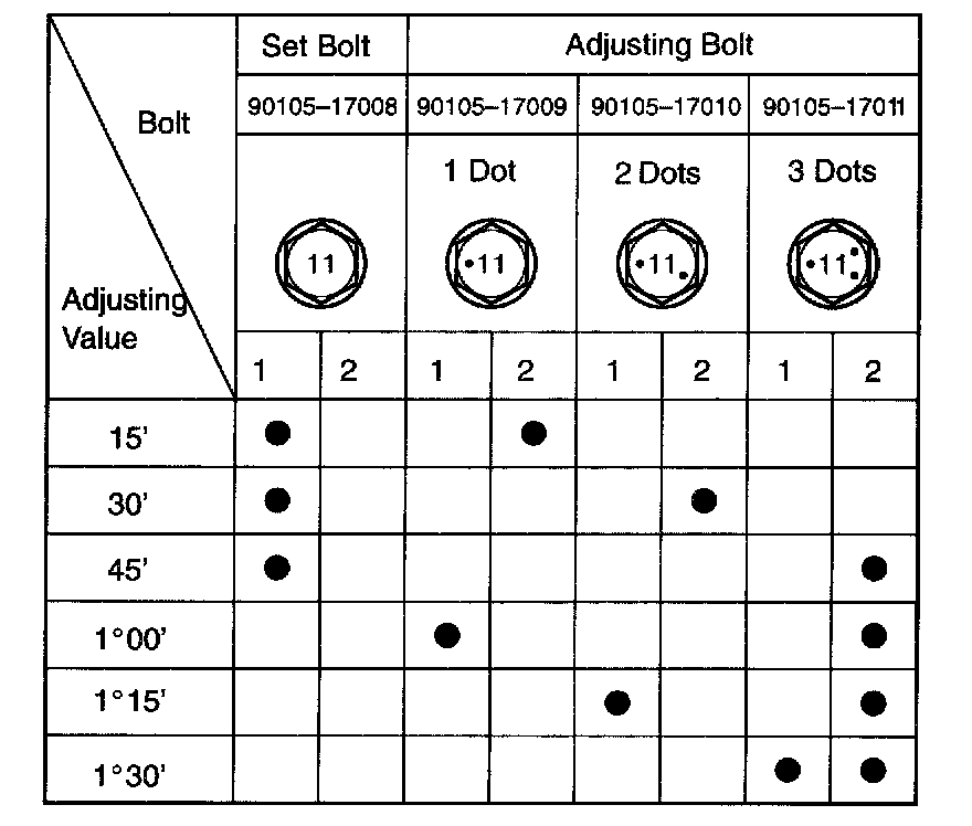 If the camber is not within the specified value, using the following table, estimate how much additional camber adjustment will be required, and select the camber adjusting bolt.