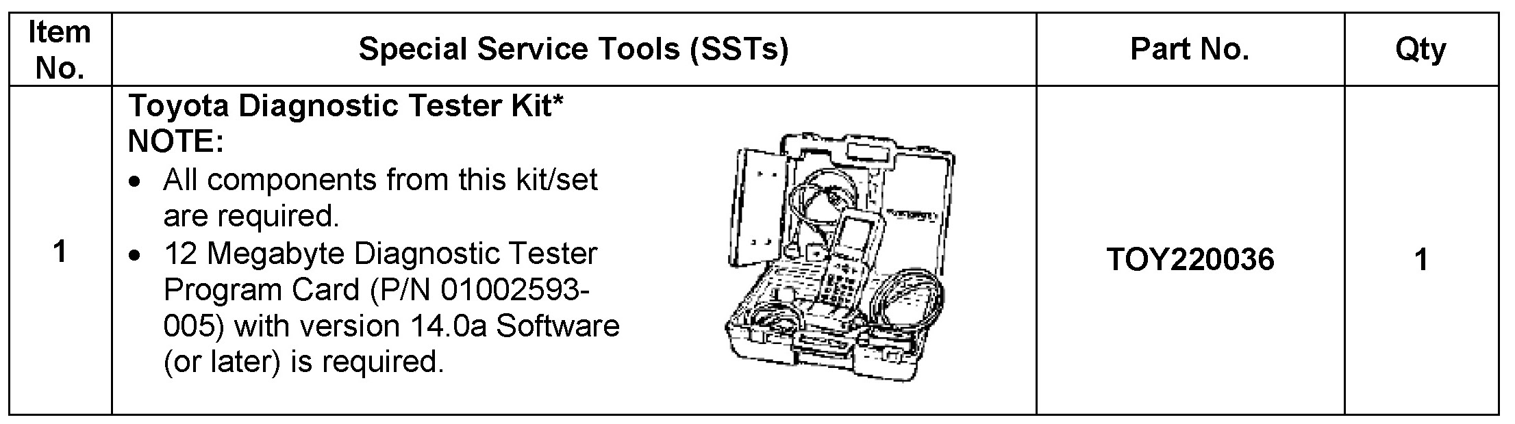 Version 12.01a or later Diagnostic Tester software is required.