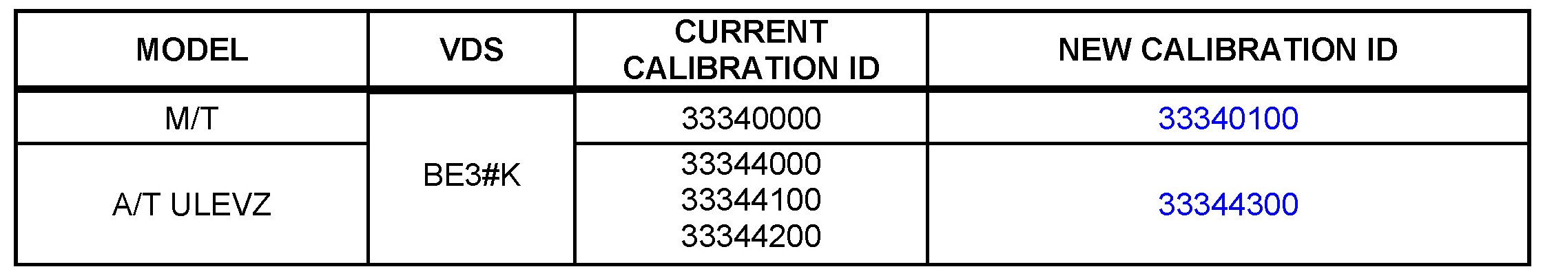 2. Perform ECM (PCM) recalibration (see Calibration Procedure) with New Calibration ID as shown above in Calibration Information table.