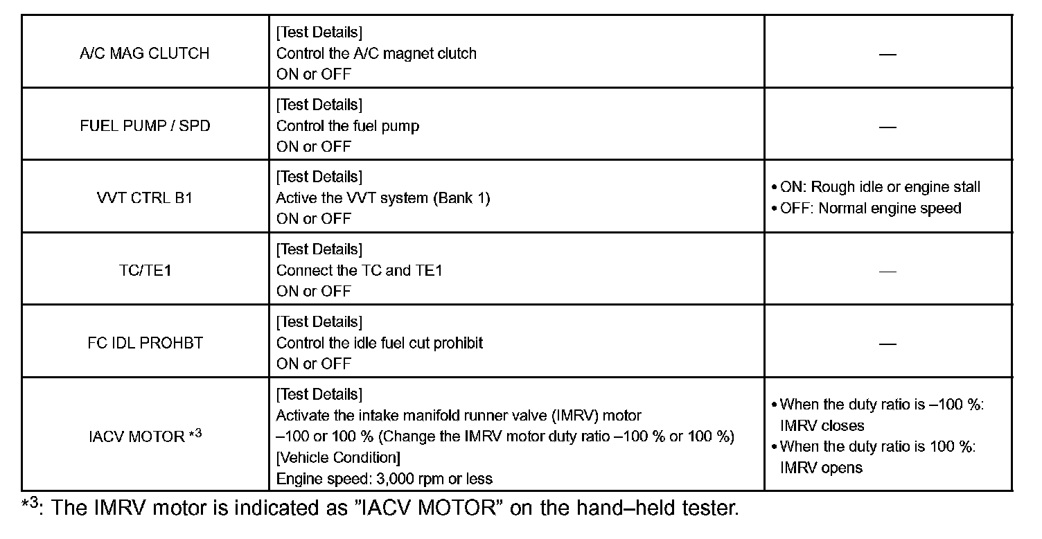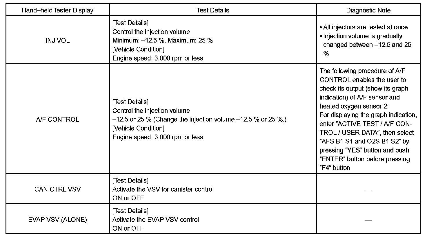 ACTIVE TESTHINT: Performing the hand-held tester ACTIVE LIST allows relay, VSV, actuator and other items to be operated without removing any parts. Performing the ACTIVE LIST early in troubleshooting is one way to shorten labor time. The DATA LIST can be displayed during the ACTIVE TEST.