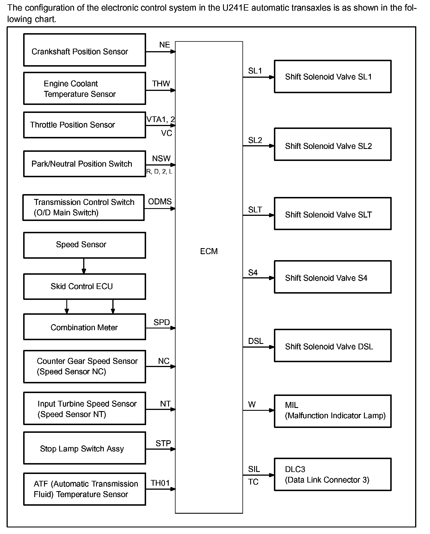 The ECT (Electronic controlled automatic transmission/transaxle) is an automatic transmission/transaxle that electronically controls shift timing using the ECM. The ECM detects electrical signals that indicate engine and driving conditions, controls the shift point, and selects the appropriate shift pattern based on driver habits and road conditions. As a result, fuel efficiency and power transmission/transaxle performance are improved.