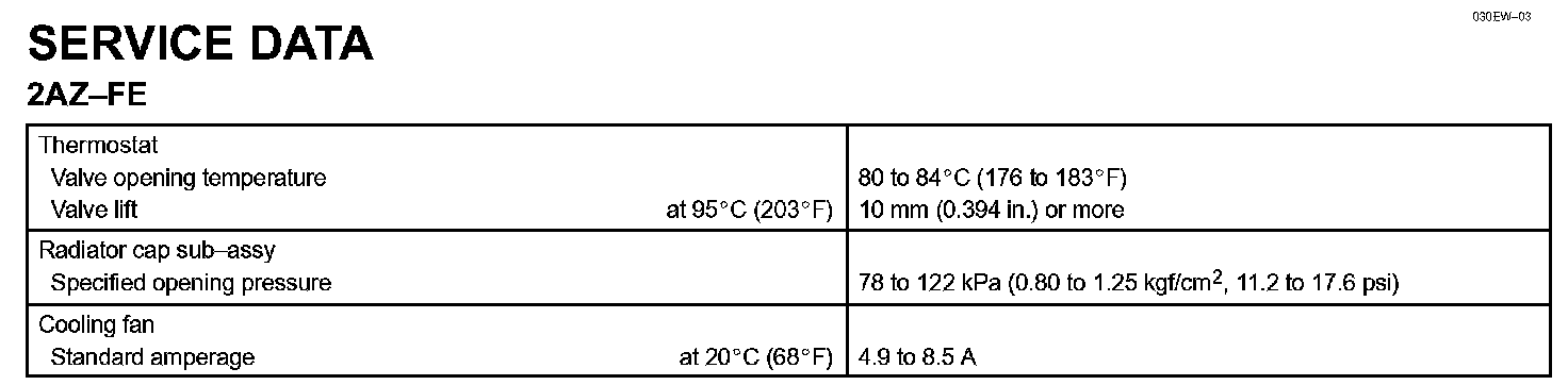 Cooling - Service Data: