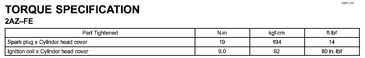 Ignition - Torque Specification: