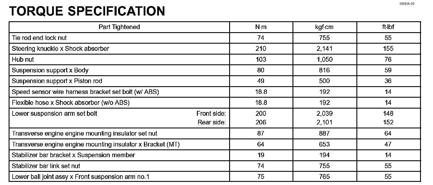 Front Suspension - Torque Specification: