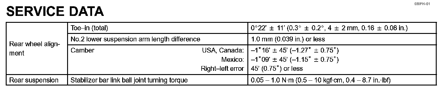 Rear Suspension - Service Data:
