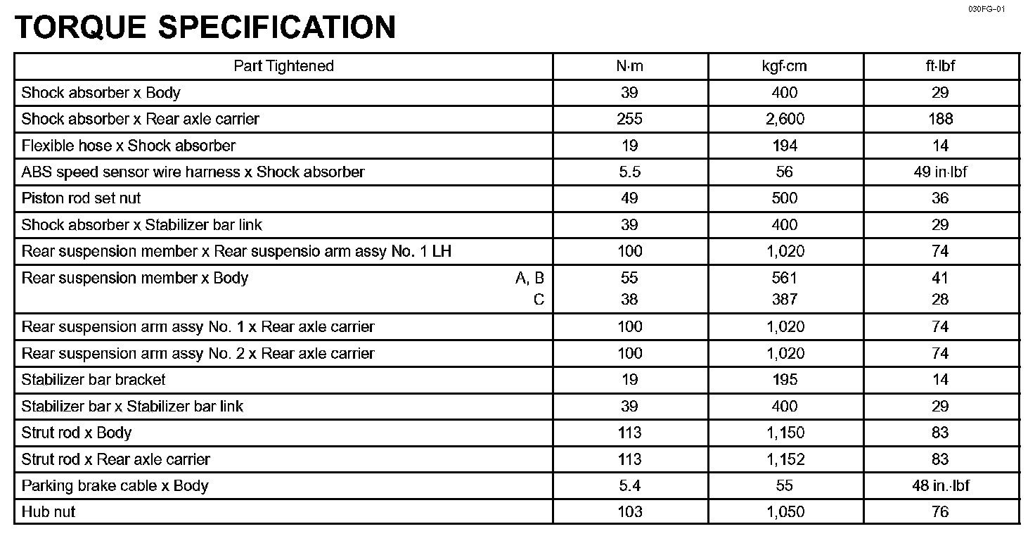 Rear Suspension - Torque Specification: