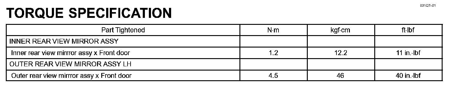 Windshield/WindowGlass/Mirror - Torque Specification: