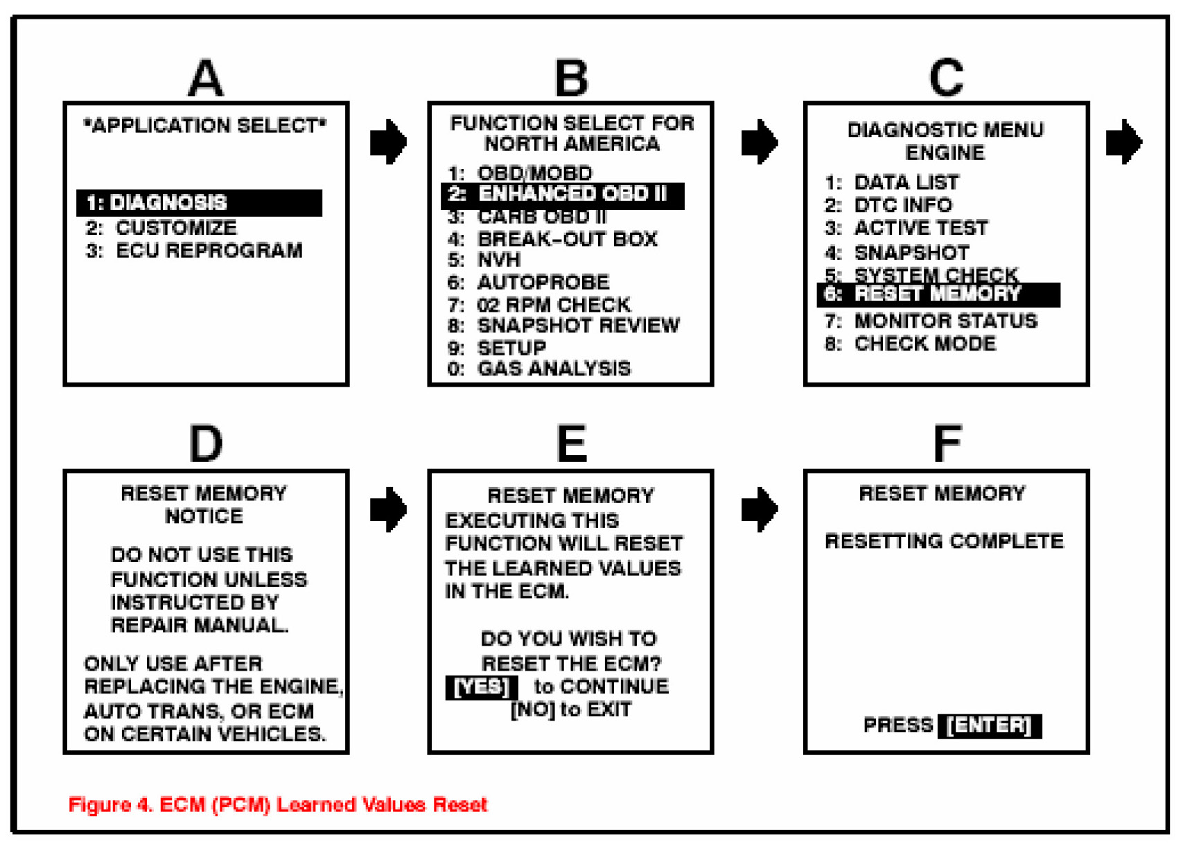 4. Reset the ECM learned values using the diagnostic tester. Refer to the procedures.