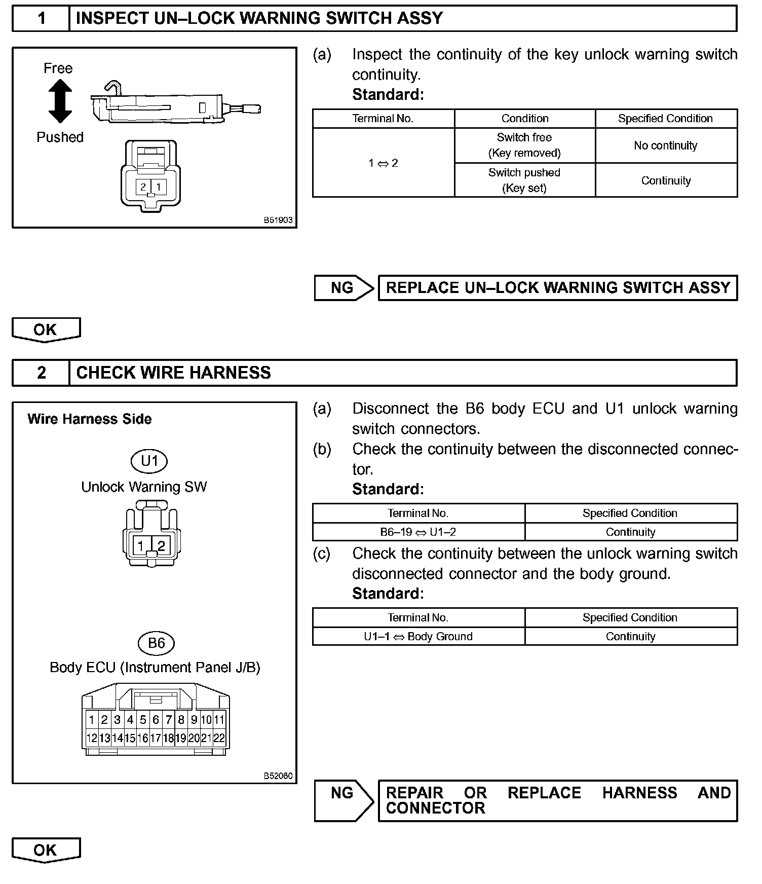 Body ECU senses, by the unlock warning switch, that the key is in the key cylinder. Because of this, the body ECU will unlock all the doors immediately after locking them if a door is locked while the key is in the key cylinder.