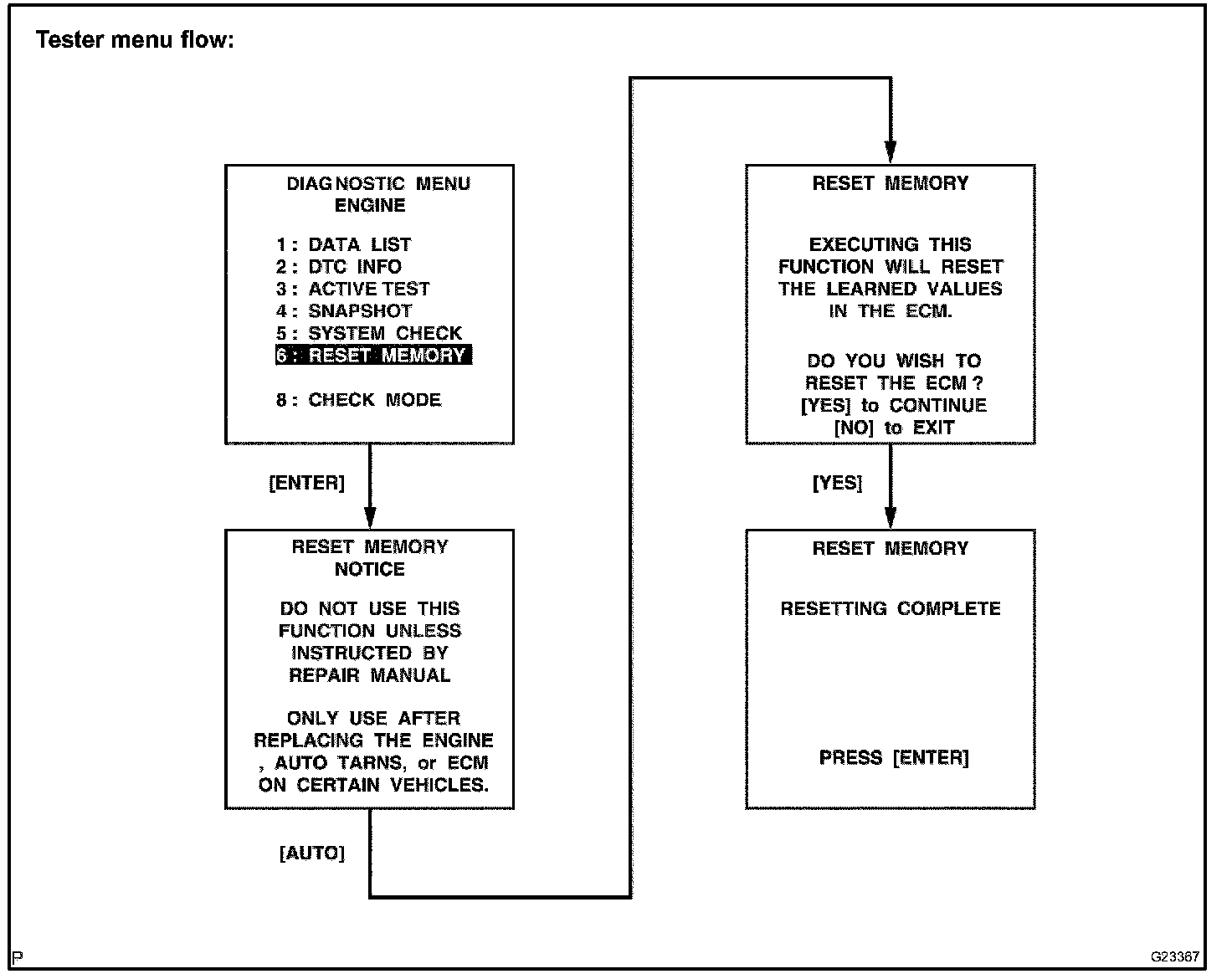 CAUTION: After performing the RESET MEMORY, be sure to perform the ROAD TEST.
