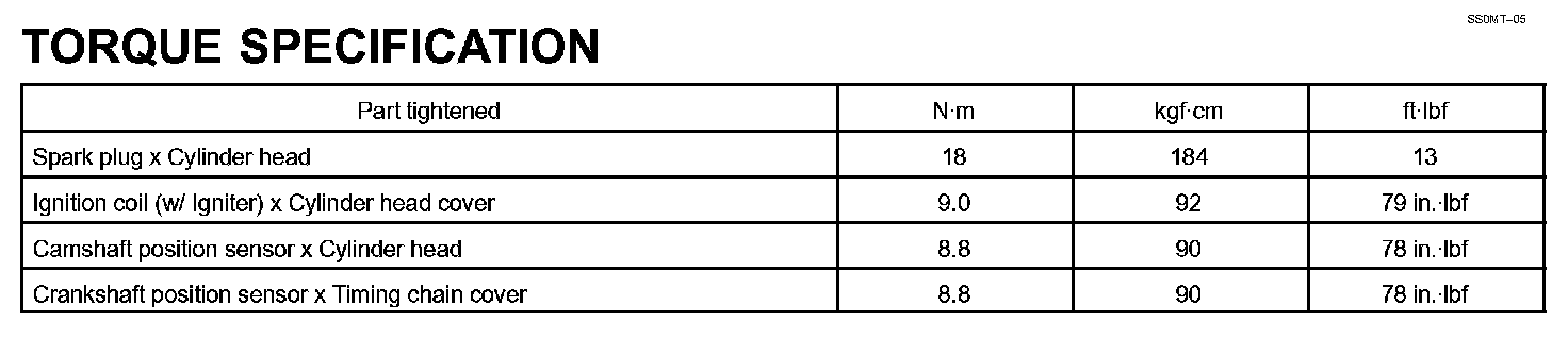 Ignition - Torque Specification: