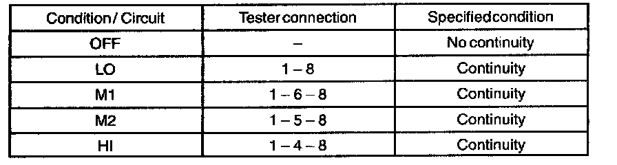 COOLER AND ACCESSORY ASSYa. Inspect blower switch continuity.