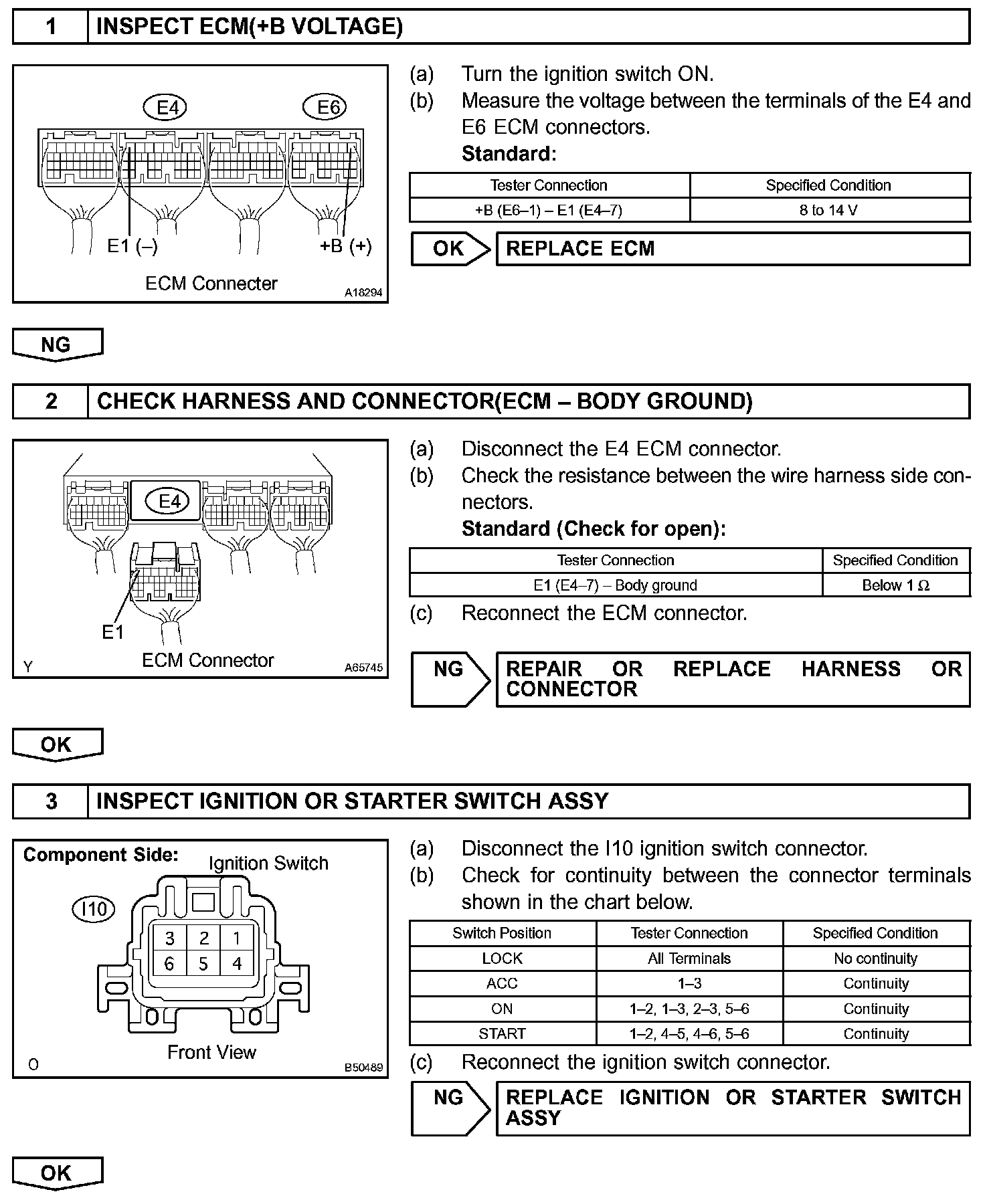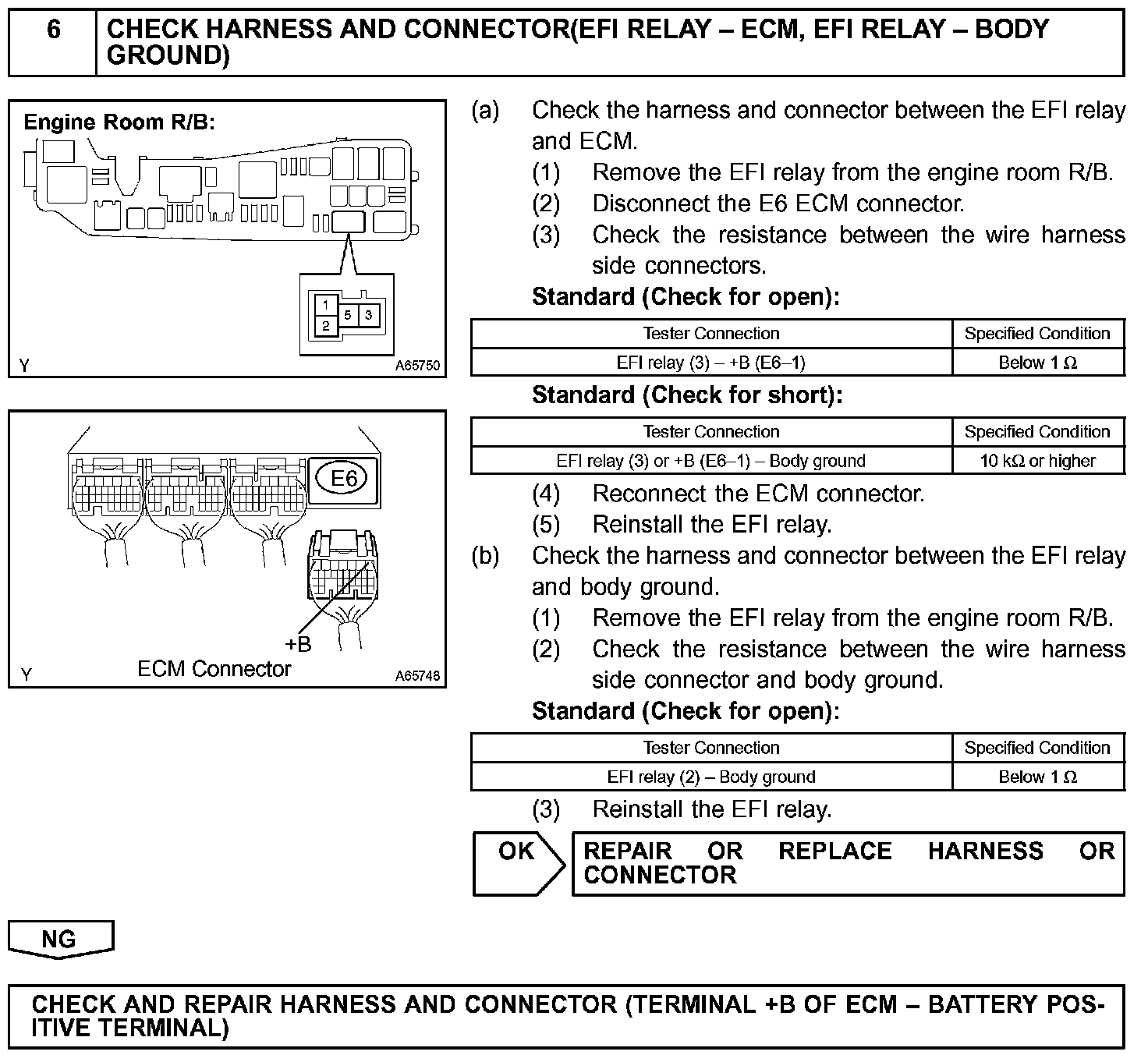 This signal causes current to flow to the coil, closing the contacts of the EFI relay and supplying power to terminal +B of the ECM.