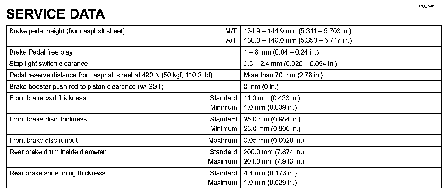Brake - Service Data: