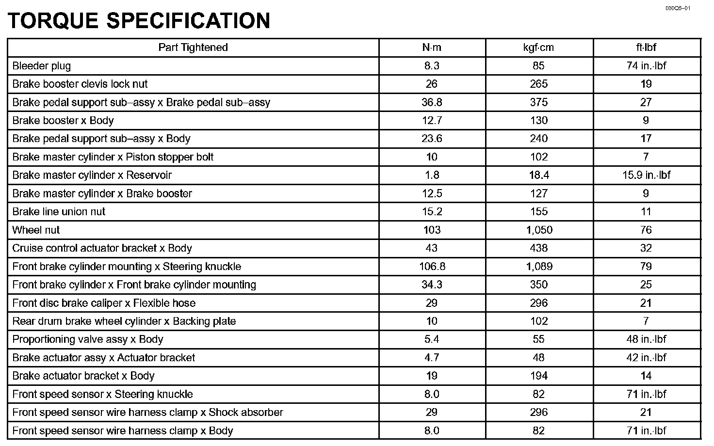 Brake - Torque Specification: