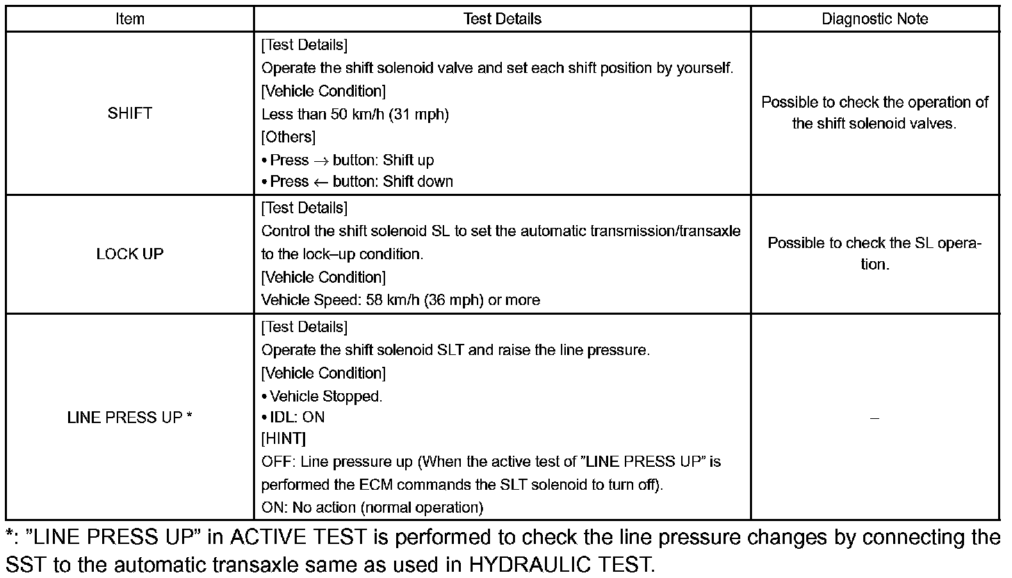 HINT: The pressure values in ACTIVE TEST and HYDRAULIC TEST are different from each other.