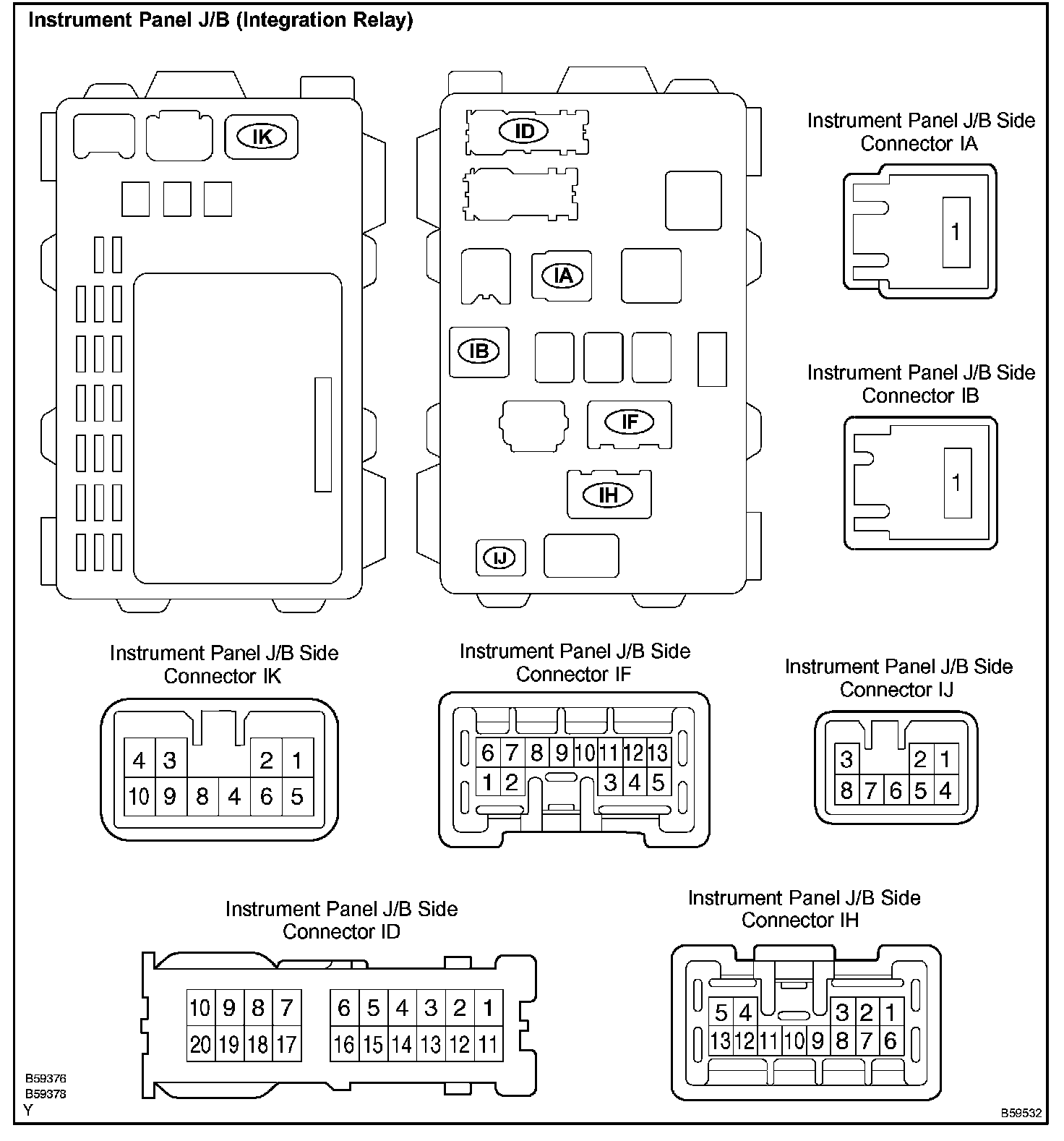 b. Disconnect connectors ID, IF, IH and IJ of the instrument panel J/B.