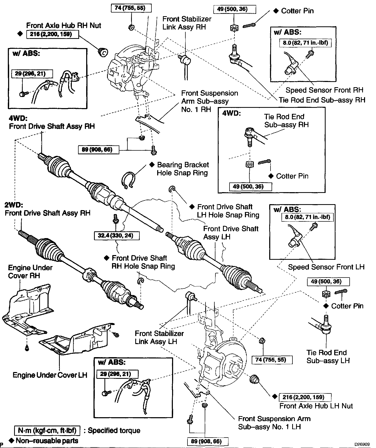 FRONT DRIVE SHAFT COMPONENTS W/ RELATED COMPONENTS