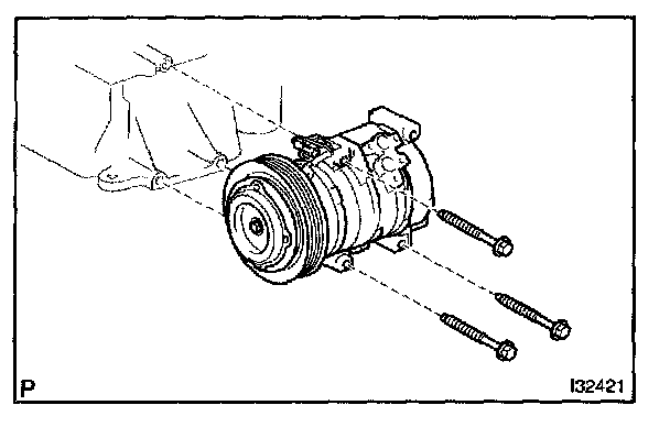 b. Remove the 3 bolts and compressor and magnetic clutch.