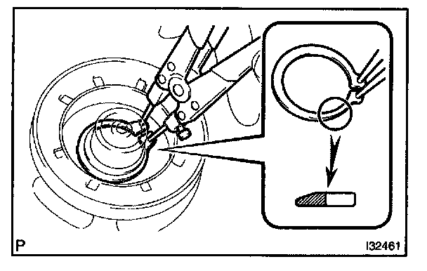 b. Using a snap ring expander, install a new snap ring with the chamfered side facing up.