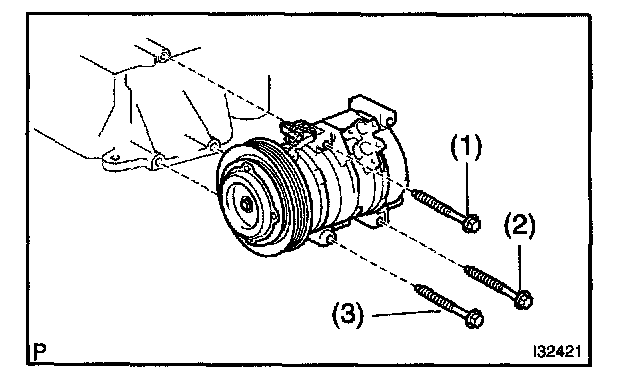 NOTE: Tighten the bolts in following order shown in the illustration to install the compressor and magnetic clutch.