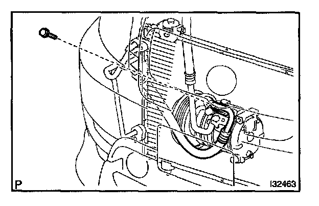 a. Remove the bolt and disconnect the discharge hose sub-assy from the compressor and magnetic clutch.