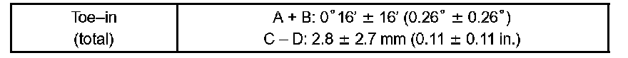 It the toe-in is not within the specified value, inspect and replace the suspension parts as necessary.