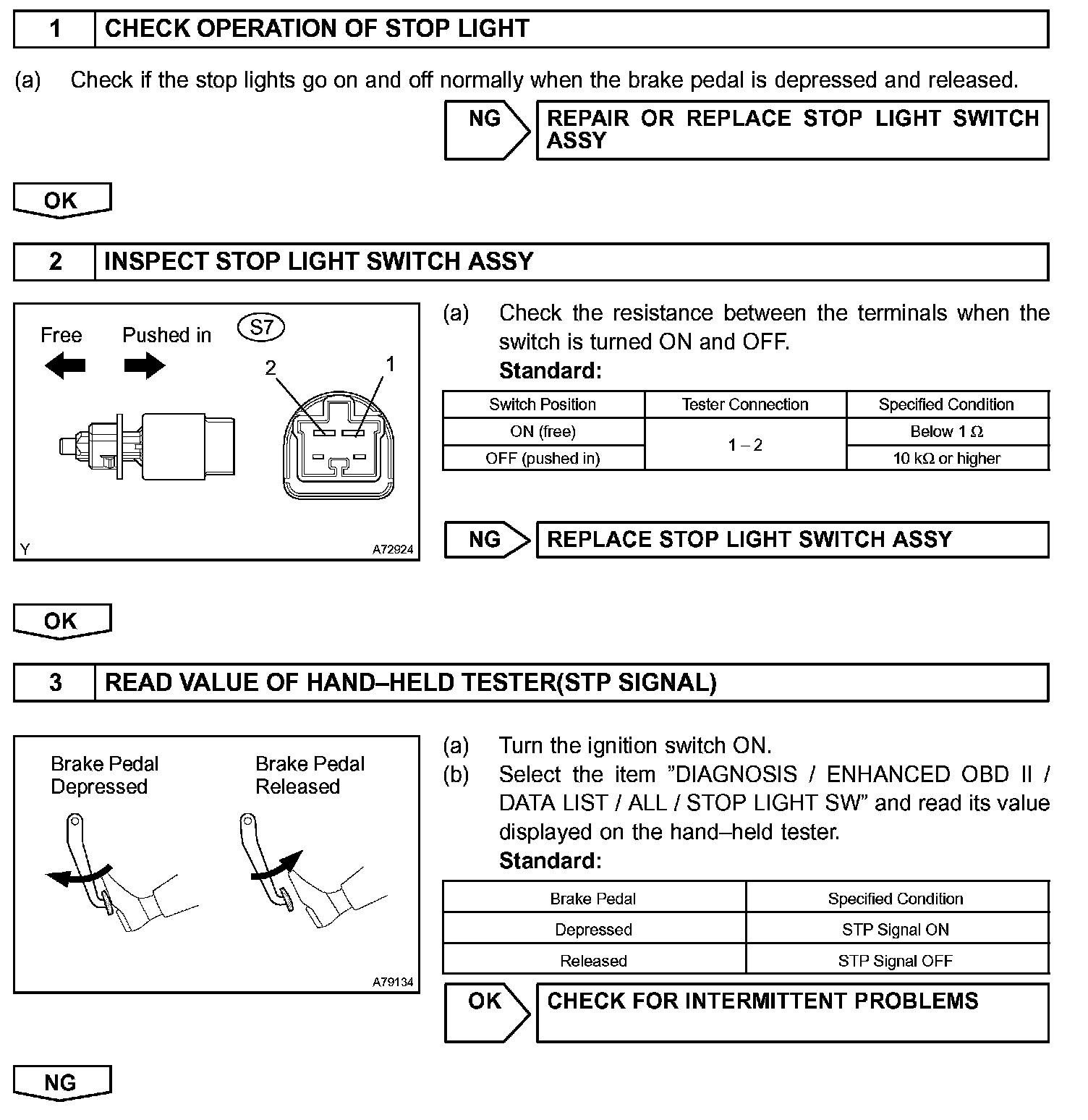 The STP signal is used mainly to control the fuel cut-off engine speed (The fuel cut-off engine speed is reduced slightly when the vehicle is braking.).