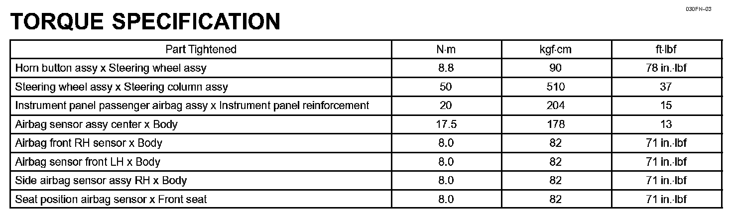 Supplemental Restraint System - Torque Specification: