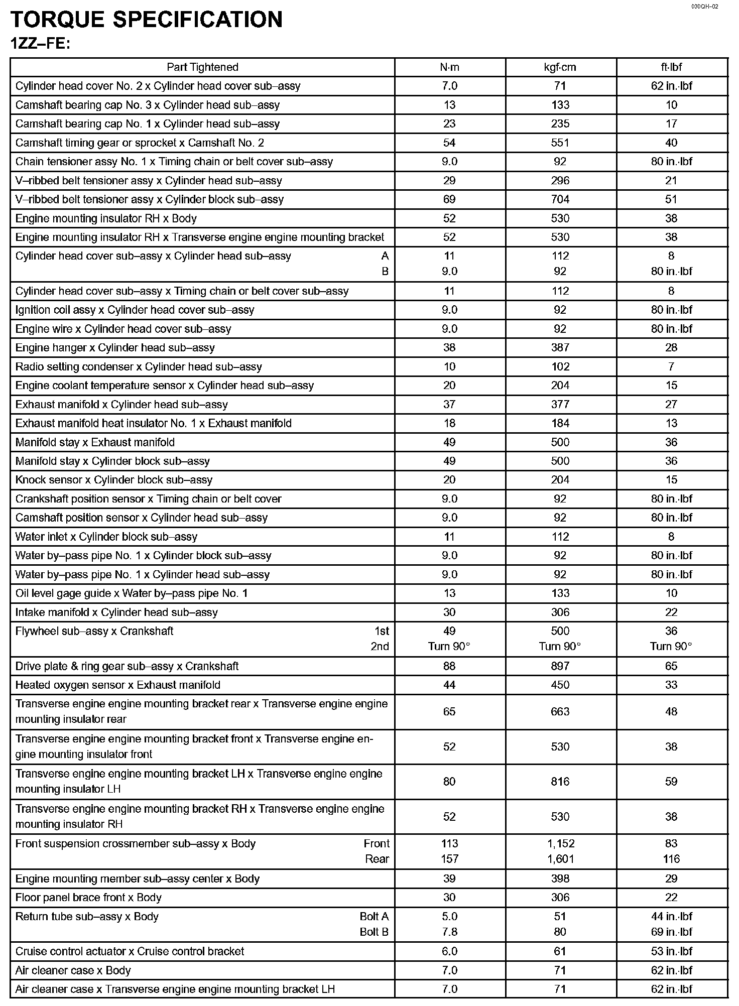Engine Mechanical - Torque Specification Part 1: