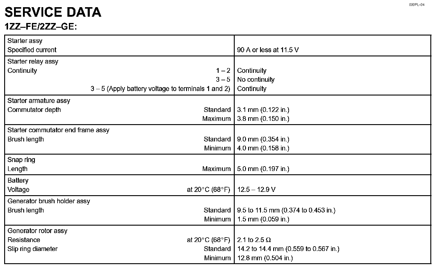 Starting & Charging - Service Data: