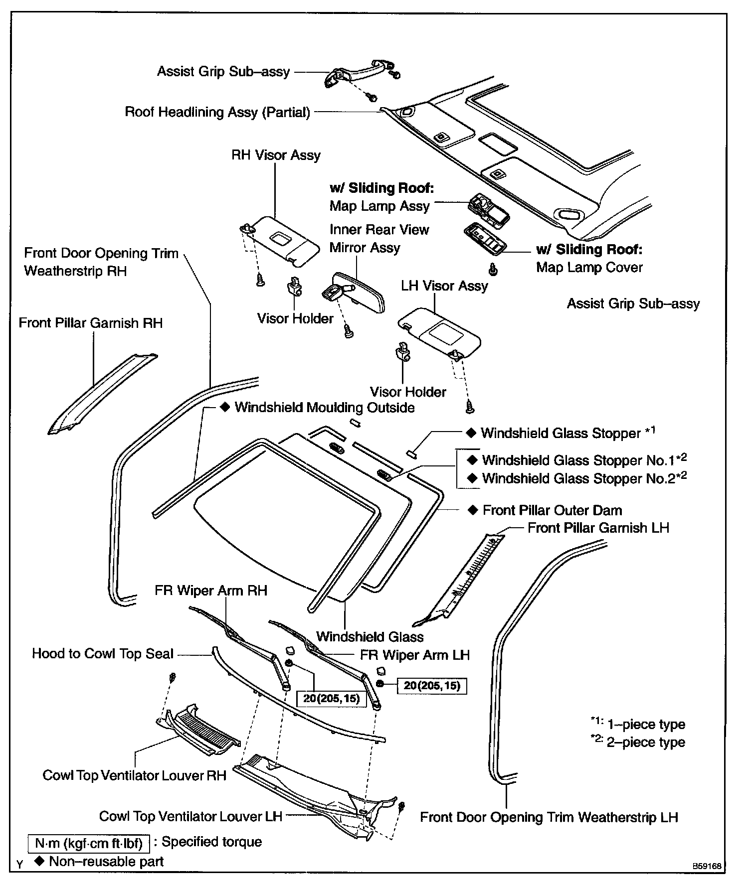 a. Install 2 new windshield glass stoppers No.1 to the body.