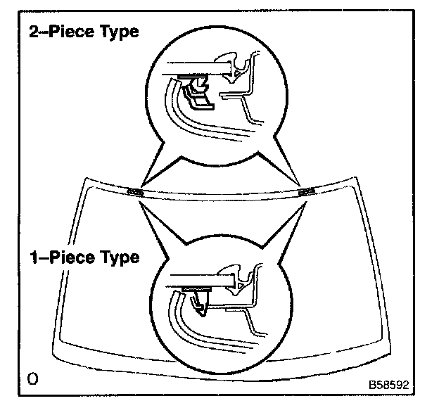 HINT: Depending on a vehicle type, either a 1-piece type or a 2-piece type of stopper is installed.