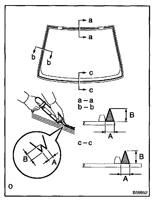 a. Using a scraper, remove the damaged stoppers, dam and adhesive sticking to the glass.