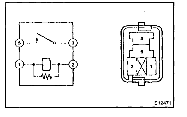 2. Using an ohmmeter, check that continuity exists between terminals 3 and 5 when the battery voltage is applied across terminals 1 and 2.