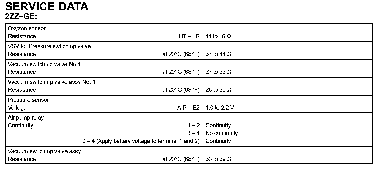 Emission Control - Service Data: