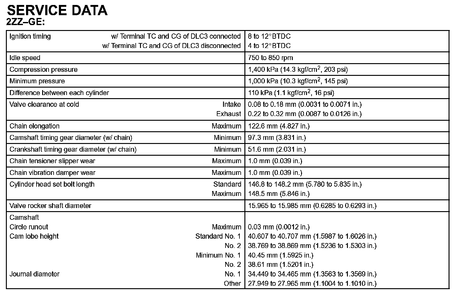 Engine Mechanical - Service Data Part 3:
