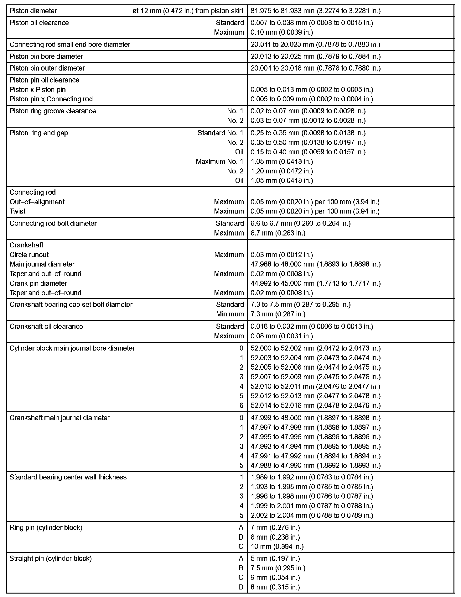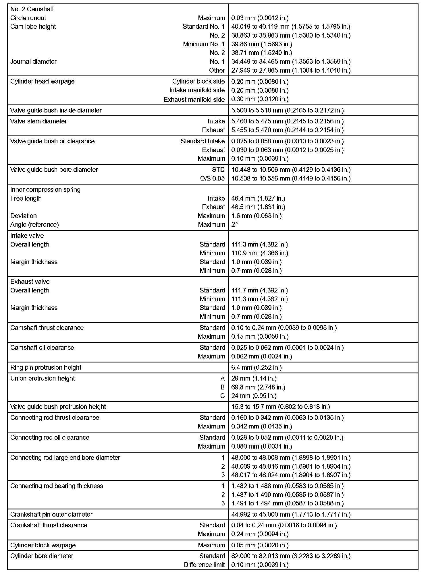 Engine Mechanical - Service Data Part 2: